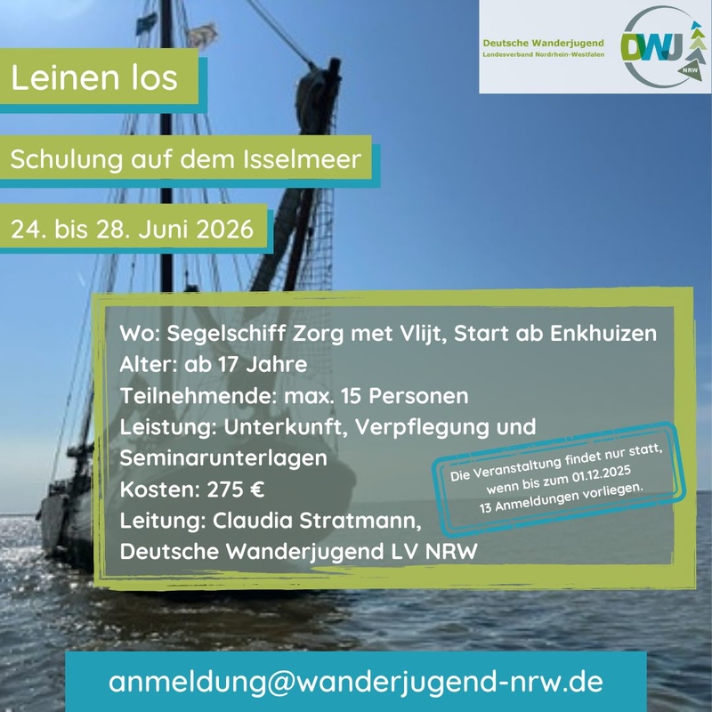 Diese Veranstaltung kann nur stattfinden, wenn bis zum 1. Dezember 2025 die Mindestanzahl von 13 angemeldeten Personen erreicht ist.