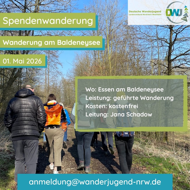 Dann bist du bei uns am 1. Mai genau richtig. Der Baldeneysee ist der größte Ruhrstausee im Ruhrgebiet und wir nehmen uns einen Tag Zeit, die Umgebung des Stausees mit unseren eigenen Füßen zu erkunden. Das besonderer bei dieser Wanderung ist, dass wir für jeden gelaufenen Kilometer Spenden sammeln. Sei dabei und erwandere Spenden für die Wanderjugend NRW.