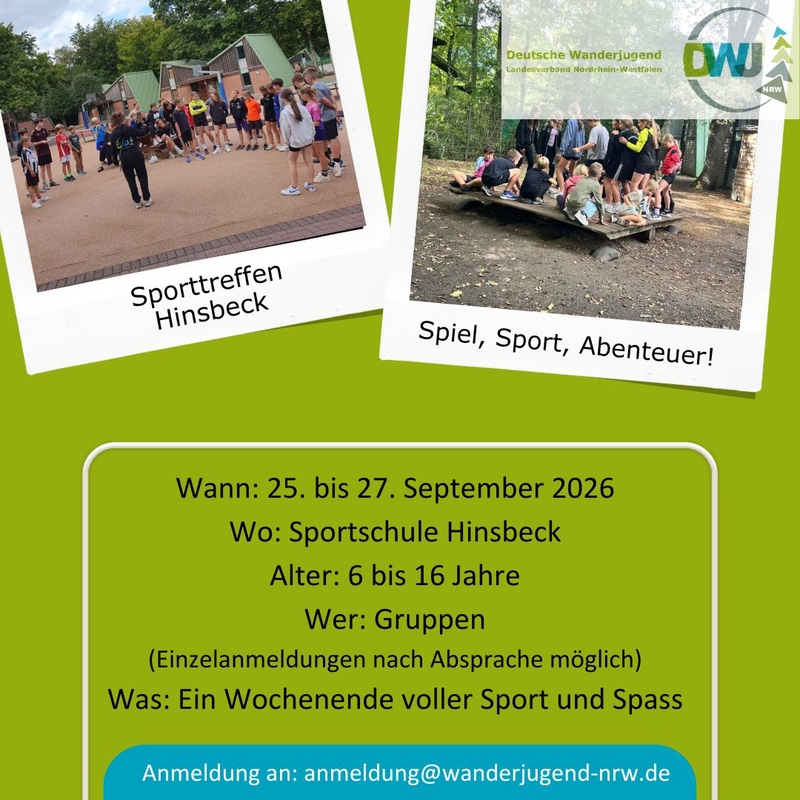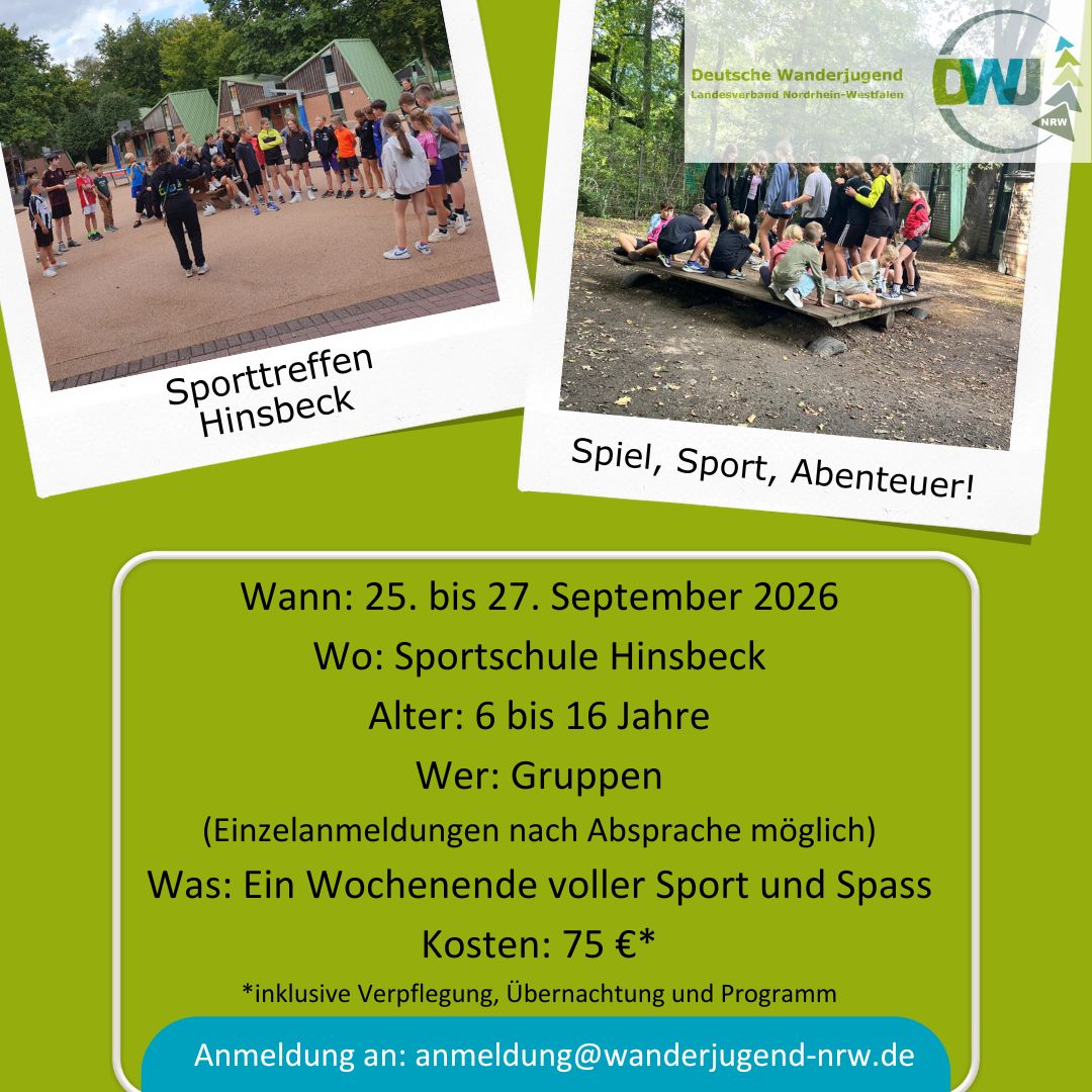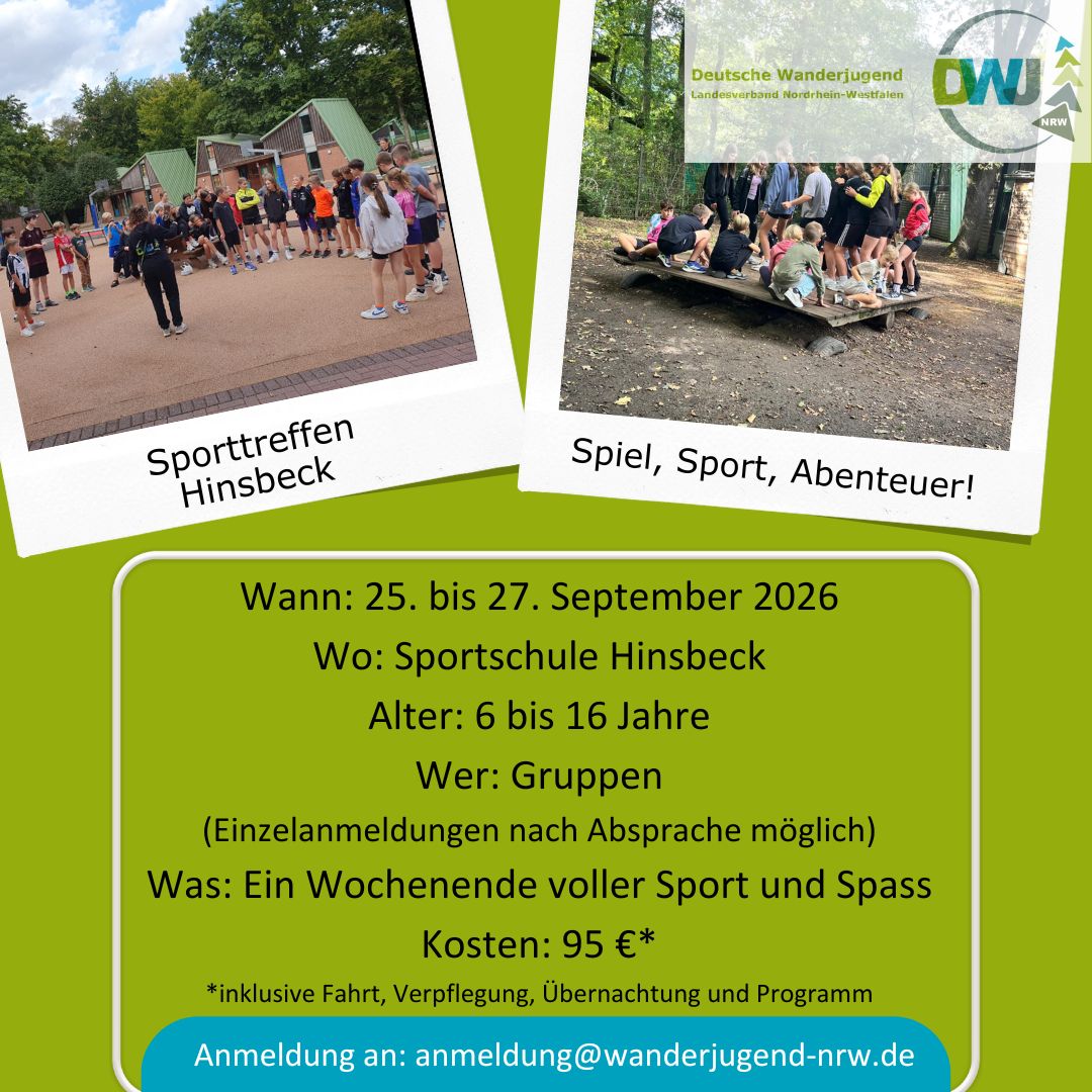 Das Sporttreffen in Hinsbeck wird im Sport- und Erlebnisdorf stattfinden. Es richtet sich an die Gruppen des Eifelvereins und ist auch für Gruppen aus benachbarten Regionen des Sauerländischen Gebirgsvereins gedacht.